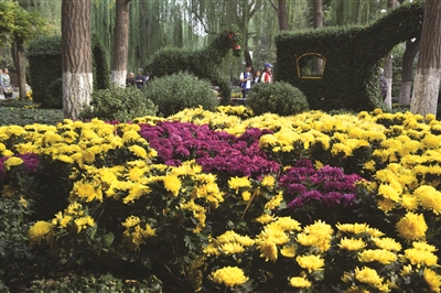 金秋时节,山东省济南市在市区主要街道和公园布置的上万盆菊花进入了盛开期,为金秋里的泉城增添了一道美丽的风景。 新华社记者徐速绘摄