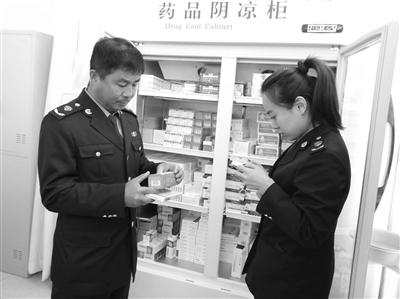 近日,洮南市市场监督管理局永康管理所与洮南市食药监局药品监管科联合对辖区内医疗机构的医疗用药采购、储存、使用情况进行了重点检查,进一步强化药品采购、储存、养护、使用等相关信息记录和管理的完整性、规范性、准确性,尤其是严格近效期药品和过期失效药品管理,确保群众用药安全有效不出问题。图为执法人员检查药品时的情景