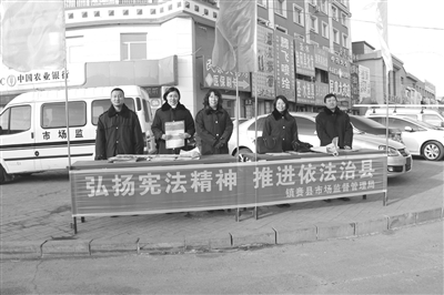 近日,镇赉县市场监督管理局联合镇赉县司法局开展了以“大力弘扬法治精神,协调推进‘四个全面’战略布局”为主题的法制宣传活动。宣传人员集中在“普法一条街”,以法律讲解、街头宣传和咨询服务3种形式进行相关法律法规知识的宣传和普及。他们共发放宣传单1300多份,设置咨询台3个,提高了群众法制意识,获得了群众好评 张静梅摄