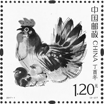 《丁酉年》生肖邮票由中国当代艺术家韩美林担纲设计。整个设计将生肖鸡的形态神韵与深厚的家国情怀完美融合在一起,邮票色彩鲜明、线条流畅、形象传神、极具美感。