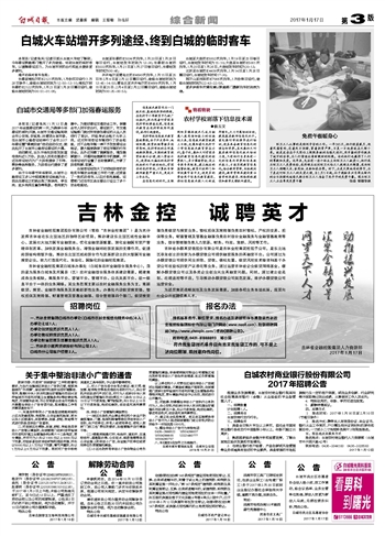 白城至长春的K5034次列车,1月20日至1月26日每日运行,白城站发车时刻为13:30;长春到白城的K5033次列车,1月21日至1月27日每日运行,长春站发车时间为00:46;