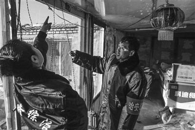 春节期间,洮南市兴隆街道隆新社区组织社区治安联防巡逻,对居民的烟花存放地点和乱接电源、电线老化等问题及时处理。图为社区治安员在居民家中帮助消除安全隐患。 邱会宁摄