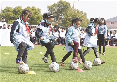当日是亚足联设立的“女足日”,由中国足协组织的“女孩足球节”南京站活动在南京市高淳区永丰中学举行,来自部分中小学校的女学生参加了足球啦啦操表演、五人制足球赛、亲子足球赛等活动。 新华社记者孙参摄
