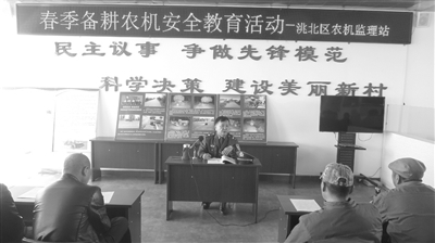 为进一步加强安全生产教育和法制建设,切实推动全区农机安全生产形势持续稳定好转,洮北区农机监理站组织工作人员在备春耕时期,深入到集市、田间、场院、农机经营维修网点和农机合作社等场所,给广大农民、养机户、农机驾驶员上安全警示教育课,解答养机户和农民群众有关农机安全生产和农机惠农政策等方面的问题,切实提高安全生产意识。 马杰摄