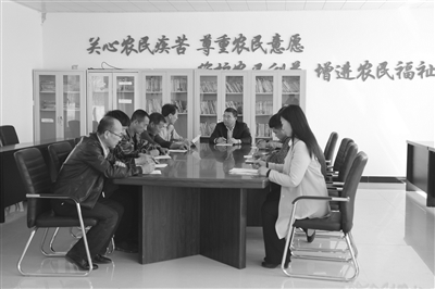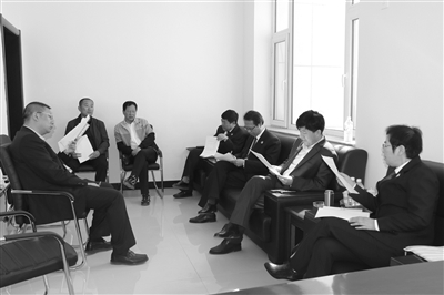 镇赉县人民检察院党组书记、检察长张国强与包保村的干部研究农业产业化项目。