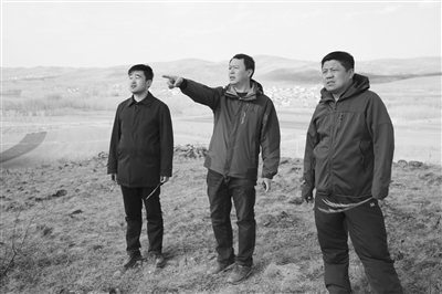 洮南市人民检察院党组书记、检察长彭大羽与乡村领导规划生态经济林建设。