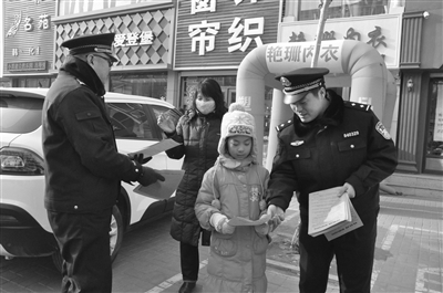 民警在打击“盗抢骗”行动中,开展防范宣传活动。 韩麟麟摄