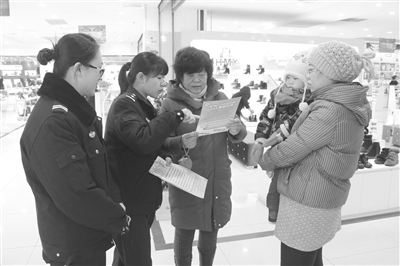 民警在辖区商场开展防范“盗抢骗”宣传活动。 田雷摄