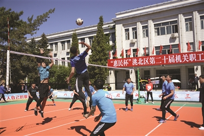 本报讯(王维俊)为解放思想,凝聚力量,激发全区干部职工干事创业热情,5月22日,“惠民杯”洮北区第二十届机关职工排球赛开赛。