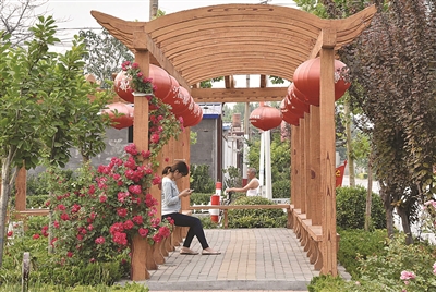 整洁美观的山东省淄博市朱台镇罗家村文化广场(5月24日摄)。