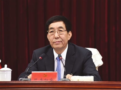选举结束后,新当选的省委书记巴音朝鲁代表新一届省委常委会发表讲话。