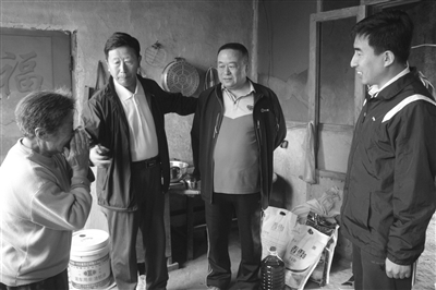 近日,白城广播电视台、白城市邮政管理局、大安市委统战部的同志来到帮扶村大安市四棵树乡头段村看望老党员李福仁的遗孀杨桂琴,在了解杨桂琴老人的困难情况后,3个单位做出了帮助老人解决生活困难的决定,表示“只要老人过得开心,吃穿用大家集资,一定要让老党员的遗孀过上幸福的晚年生活”。图为帮扶单位为杨桂琴送来米面油等生活物资。 本报记者王野村摄