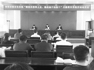 5月16日,全县宣传思想文化系统召开“解放思想事上见、撸起袖子加油干”主题教育实践活动动员会,进一步明确宣传思想文化系统主题教育实践活动的主要任务,要求各部门各单位做到先行一步、快做一步、深推一步,为全县当好表率,做好示范。 潘晟昱摄