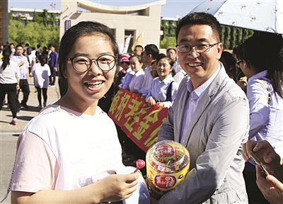 8时,记者刚刚来到白城一中考点就看到一位父亲用自行车载着女儿到达考点,在简单的叮嘱之后,便准备返程回家。“家里本来有汽车,但是担心堵车和交通管制给孩子带来焦躁的心情,就选择自行车载女儿过来,一路上有说有笑,也让她的心情得到了放松。”他一边告诉记者,一边关切地看向女儿。