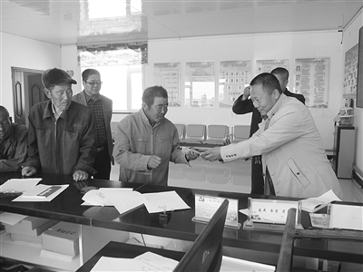 | 大安市龙沼镇长春岭村军鸿养殖场带动7户贫困户养殖肉牛。图为按照入社合同约定,对入社贫困户每户兑现分红2000元钱。 于淼摄 |