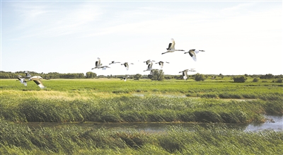 近年来,白城市委、市政府依托引嫩入白和河湖连通等重点工程,大力开展生态建设。通过引嫩入白,实施了吉林西部土地整理工程,农业生产蒸蒸日上,粮食生产能力跃上百亿斤台阶,畜禽饲养总量实现“四连增”,五个县(市、区)均获全国粮食生产先进县称号。通过河湖连通,构筑水域网络。累计连通泡塘60个,改善和恢复湿地面积640平方公里,恢复草原、芦苇面积105万亩,地下水位最高时平均上涨1.02米。如今,这里河湖互济、草茂粮丰、水碧天蓝,人与自然和谐共存的生态新白城初具规模。