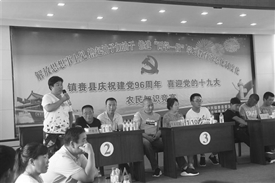 | “庆祝建党96周年,喜迎党的十九大”农民知识竞赛现场。 田宏摄 |