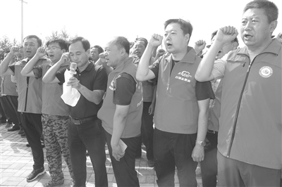 | 嘎什根乡团结、立新、创业村“庆七一广场文体活动”现场,市、县驻村第一书记和党员重温入党誓词。 田宏摄 |