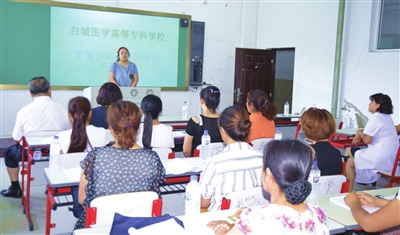 白城医高专充分利用办学资源与优势,主动投入脱贫攻坚中。为全面提高贫困村妇女生产和生活技能,学校办起了吃、住、学全部免费的育婴师(月嫂)培训班。7月初首期参加培训的洮北、大安、洮南部分乡镇贫困村的17名学员,开始为期10天的系统培训。学员结业后,由市职业鉴定中心考核,合格者颁发国家职业技能证书,学校委托家政服务中心推荐相应的就业岗位。图为培训现场。 陈宝林 唐全忠摄