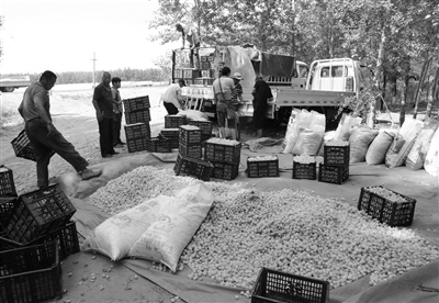 图为日前在大安市太山镇聚宝村的黄菇娘临时交易市场,聚宝村的农村经纪人李国正在向内蒙古、吉林的客商销售黄菇娘。今年聚宝村许多村民种植了黄菇娘,如今到了丰收季,一天的交易额在5万元左右,高峰时期可达二三十万元。这个临时交易市场将持续2个月左右。