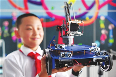 暑假期间,河北张家口市逸夫怡安小学开设“机器人小课堂”,学生们在老师的指导下学习设计、组装和运行机器人,锻炼动手动脑能力,丰富假期生活。 新华社记者王晓摄