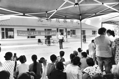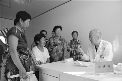 民进吉林省委医疗卫生委员会的委员组成医疗组,为当地居民义诊。医生细致地为村民诊断,亲切地与患者交谈,以通俗易懂的语言为患者讲解医疗知识。