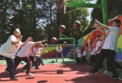 9月13日,学生们在新运动场上练习篮球。