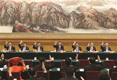 随后,会议在习近平同志主持下进行了各项议程。会议以举手表决方式通过了刘奇葆、孟建柱、赵乐际、栗战书为大会副秘书长。
