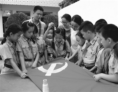 随同党旗寄来的信中写道:“十九大在今年召开的消息传来,老师和同学们都高兴极了,我们从今年‘六一’开始利用课余时间绣这面党旗,祝党的十九大胜利召开、圆满成功。”稚嫩的字迹里,承载着孩子们最诚挚的祝福。
