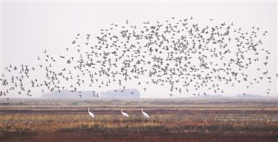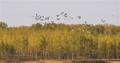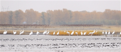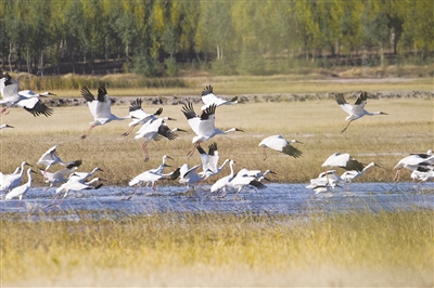 本报讯(潘晟昱文/摄)近日,镇赉县摄影爱好者在莫莫格保护区看到了1000多只白鹤,这表明镇赉已迎来了白鹤栖息停歇高峰。白鹤是国家一级保护动物,是湿地的旗舰物种,在我国被称为吉祥鸟,它们翩翩舞姿给镇赉的秋色增加了灵动,更给热爱自然的人们带来了惊喜。