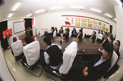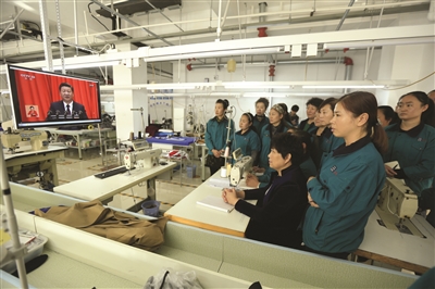 洮南特恩斯制衣公司员工收看十九大开幕会直播。