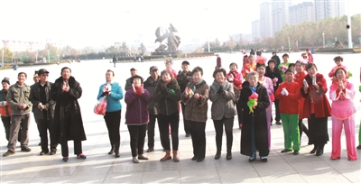 市民群众在市区阳光广场收看十九大开幕会直播盛况。