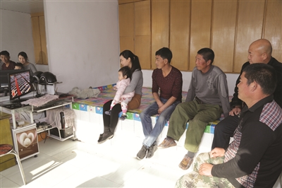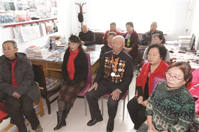 劳动模范、87岁高龄的纪英林组织当地党员干部群众收看十九大开幕会直播盛况。 本报记者摄