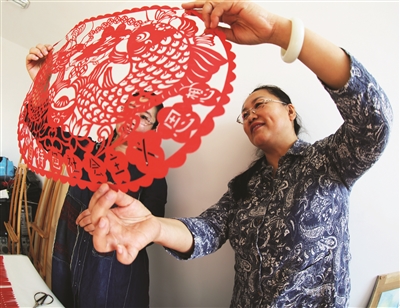 为了更好地学习贯彻党的十九大精神,通榆县文联组织艺术家们用书法、绘画、剪纸等艺术形术,生动宣传十九大精神,展现未来美好蓝图。图为剪纸艺术家在创作反映十九大精神的剪纸作品。 本报记者李晓明 马彬摄