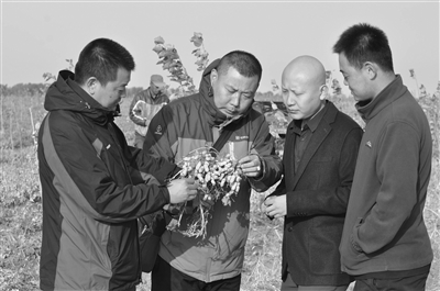 通榆县富强街张洪彬、刘晨等3名青年在县林业商会等部门支持下,今年承包了大宁苗圃45公顷更新林地种植花生。他们从黑龙江省引进高产花生粉白2号,采用膜下滴灌种植技术夺得丰收,预计收入70万元左右。 陈宝林摄