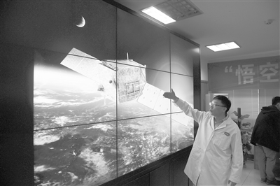 在中科院紫金山天文台,暗物质粒子探测卫星首席科学家常进在介绍卫星。
