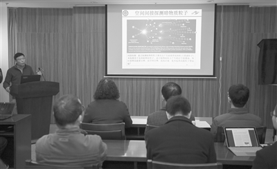 11月30日,中科院紫金山天文台在江苏南京举行暗物质粒子探测卫星“悟空”首批重大科学成果报告会。“悟空”首席科学家、中科院紫金山天文台副台长常进在报告会上介绍相关科研成果。 新华社记者李响摄