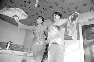 12月9日,申家村村民在家中排练二人转。洮南市大通乡申家村为丰富村民文化生活,利用冬季的农闲时节,组建了二人转家庭小剧场,时常为村民表演。他们自编的二人转《美丽洮南》等节目深受村民喜爱。 邱会宁摄