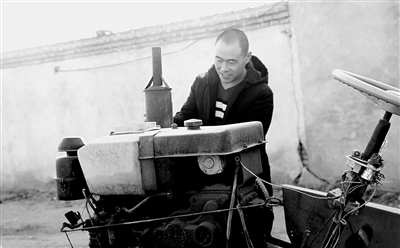 镇赉县嘎什根乡那林村种粮大户张贵峰今年种植了10公顷水稻,共打了9万公斤粮食,总收入25万多元,成为远近闻名的致富能人。这是张贵峰利用冬闲时间修理农机具。 本报记者张殿文摄