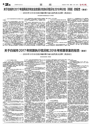 关于白城市2017年预算执行情况
