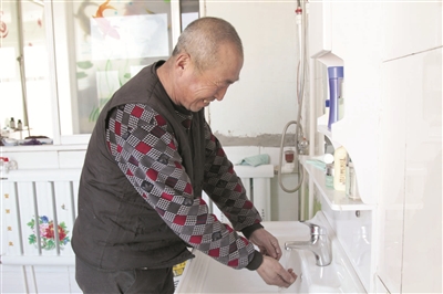 2017年洮南市福顺镇春华村全村推进改水改厕工程,目前共改水159户,改厕83户。2018年该村的改水改厕工程将全部完成。这一工程的实施,将进一步维护和提高村内卫生环境,保证村民身心健康和生活质量。图为村民程越宇在家中使用清洁水。 本报记者李晓明 马彬摄