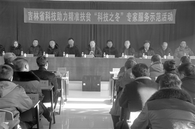 日前,吉林省科协带领12316新农村热线蔬菜专家组成员及省蔬菜花卉研究院、农业大学等单位的农业专家,深入到东屏镇,开展科技助力精准扶贫“科技之冬”集中示范活动。图为专家们围绕大棚蔬菜种植、食用菌和果树栽培、畜牧养殖等常见技术问题进行专业讲解。 王凯摄
