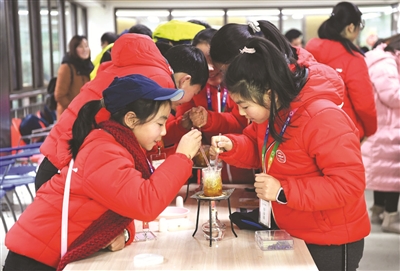 1月29日,在重庆金佛山第二课堂科学营地,参加冬令营的同学在制作琥珀。