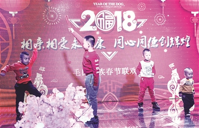 “尊敬的各位长辈,敬爱的姑姨叔舅,亲爱的兄弟姐妹,可爱的小朋友们,过年好!在这个辞旧迎新的日子里,毛氏家族四世同堂欢聚在此,迎来了第二届春节联欢会……”在四位年轻人的主持下,伴着喜感十足、节奏明快的开场舞,毛氏家族春节联欢会开始了。