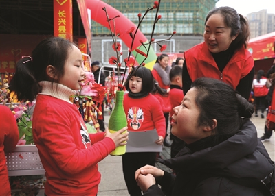 3月3日,志愿者和孩子们在浙江省长兴县和文化广场开展义卖捐助活动。