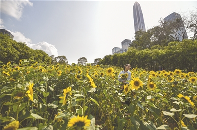 近日,位于深圳市民中心南广场约3000平方米的向日葵花园,吸引大批市民前来游玩。