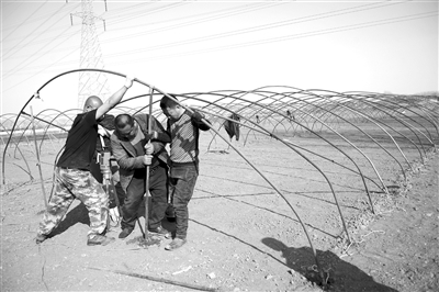 针对今年“春脖子”短的实际情况,洮北区农民备耕突出一个“早”字,即种植计划早落实、资金早筹措、农资早准备、农机早检修、农活早安排,争取备耕生产的主动权,为适时播种奠定了基础。图为德顺蒙古族乡白吉村农民正在搭建水稻育苗大棚。 王维俊 本报记者张殿文摄