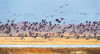 镇赉县被誉为中国白鹤之乡,全球90%以上的白鹤迁徙时都要来到这里停歇,这里丰富的自然资源和重要的地理位置每年也吸引着其他大批候鸟入境。当前镇赉各处湿地冰雪消融,北迁归来的候鸟除了鹤类还有豆雁、白额雁等数万只,天鹅、白鹭、野鸭、麦鸡、鸥类更是随处可见。
