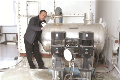 洮北区平安镇中兴村饮水安全工程于2014年10月建成,受益人口达1040人,实现了自来水入户,上下水便利,保障了村民卫生健康,提升了村民幸福指数。该工程促进了农村供水规范化建设,为新农村建设起到了示范作用。图为4月15日饮水安全工程技术人员正在检测饮水设备。 本报记者马彬摄