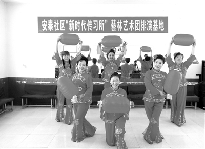 为让十九大精神在社区落地生根、开花结果,同时也为丰富辖区居民文化生活,近日,洮南市团结街道安泰社区联合辖区艺术团成立了安泰社区“新时代传习所”艺林艺术团排演基地,用百姓喜闻乐见的形式传达好党的各项方针政策,更好地为辖区居民服务。图为居民在“新时代传习所”艺林艺术团排演基地排练。 罗艳玲 本报记者张殿文摄